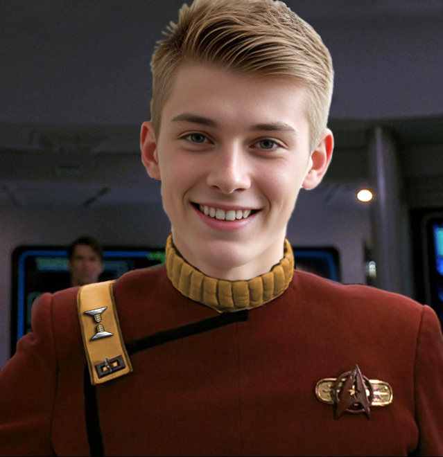 | Personal History | Austin spent much of his early life living in Helsinki with his mom and her parents as his father was on space duty full time. Tristan wanted his son to have a stable home life by living in the same place, something he never had the luxury of. Growing up in the mountains of Finland he grew to appreciate the snow and skiing.. He admired his father's adventures in space and longed for a similar path and was instilled with the desire to follow in his footsteps. However, Austin always felt the weight of living up to his father and grandfather's legacies, wondering if he truly earned his assignments or if they were merely due to familial connections. In 2289 he entered Starfleet academy with the recommendation of his father, now Admiral Faust. He majored in the emerging operations field which was the replacement for his father's specialties of navigation and science. In 2293, he graduated with honors and was assigned to the USS Excelsior under the command of the soon to be legendary Captain Hikaru Sulu. During his first voyage the ship was caught up in the Praxis incident and the resulting Khitomer Peace Conference. He served as the night shift operations officer and was on the bridge when the communique came from Starfleet Command about the whereabouts of the U.S.S. Enterprise (NCC-1701-A) and played rock paper scissors with Lt. Slater about who was to wake up Captain Sulu, the communications officer lost. Despite his inner insecurities, Austin displayed a calm and level-headed demeanor, especially during emergency situations, earning him respect among his peers. After two years of dedicated service on the Excelsior, Austin was promoted to lieutenant junior grade and transferred to the USS Hecate, where he assumed the role of the chief operations officer. The Hecate, another Excelsior-cl |